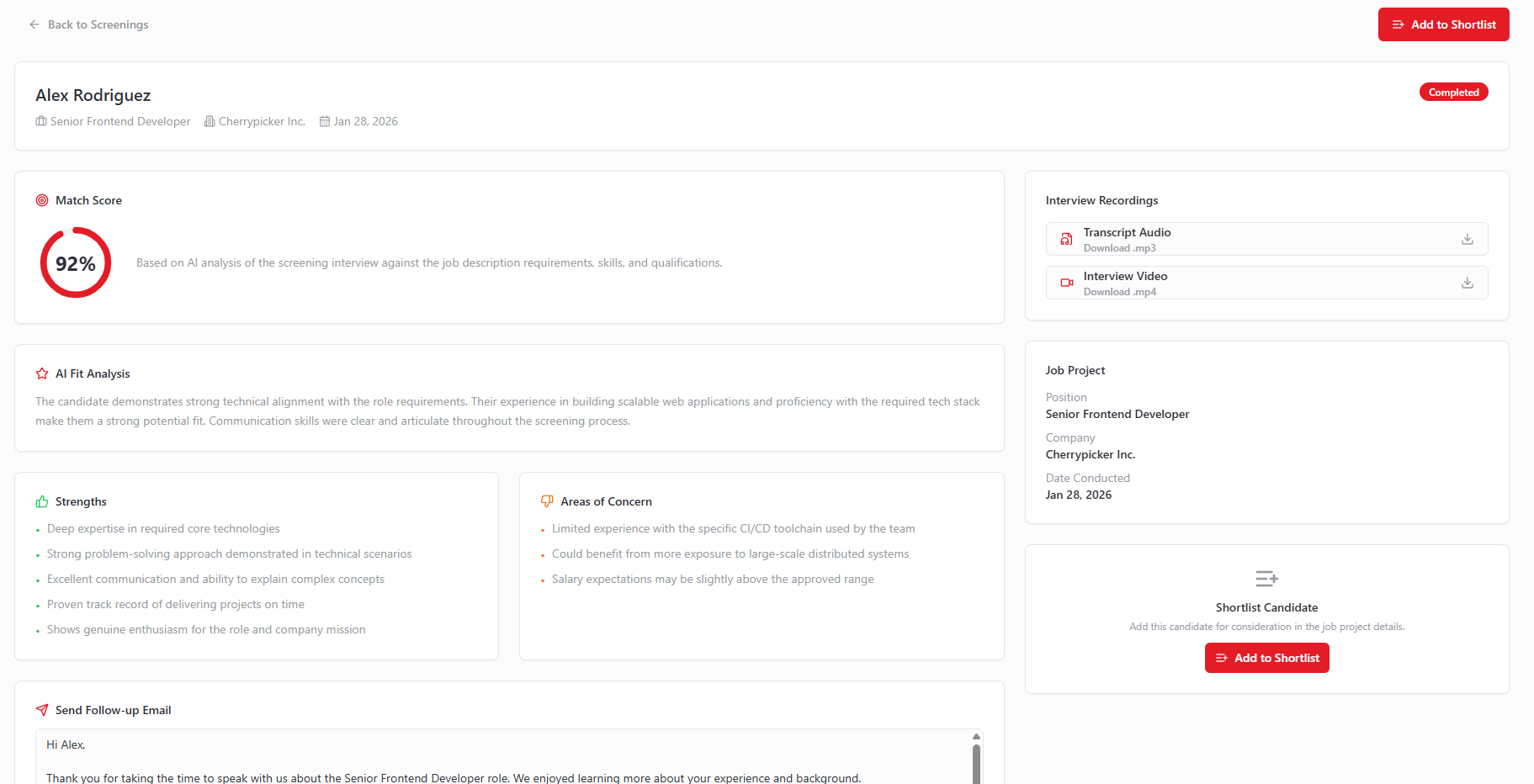 Cherrypicker performs AI-assisted video or phone screens for you.