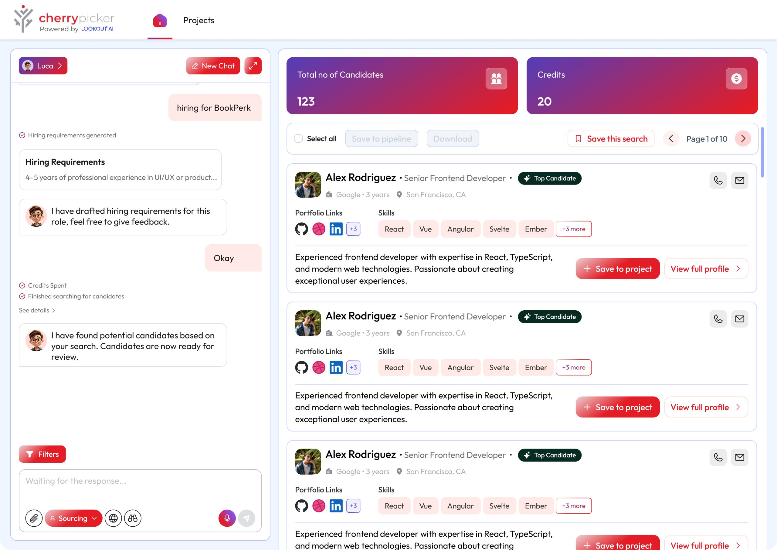 Search our built-in network of vetted corporate talent or launch outbound campaigns that Cherrypicker runs on your behalf — all powered by a flexible AI-powered infrastructure.